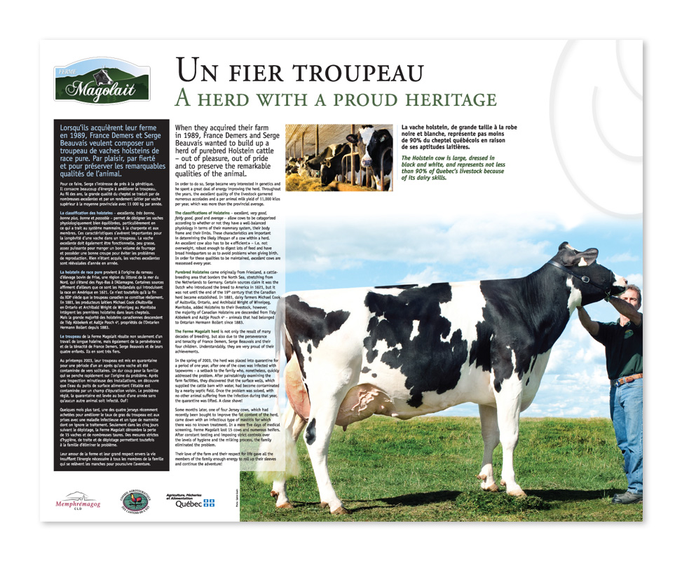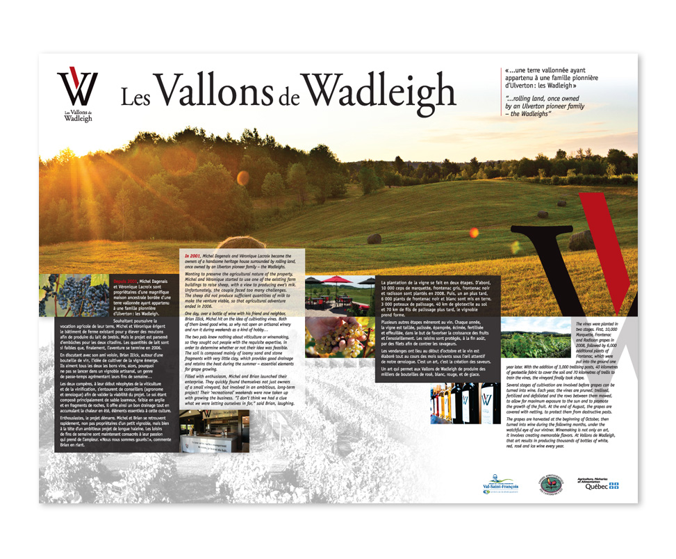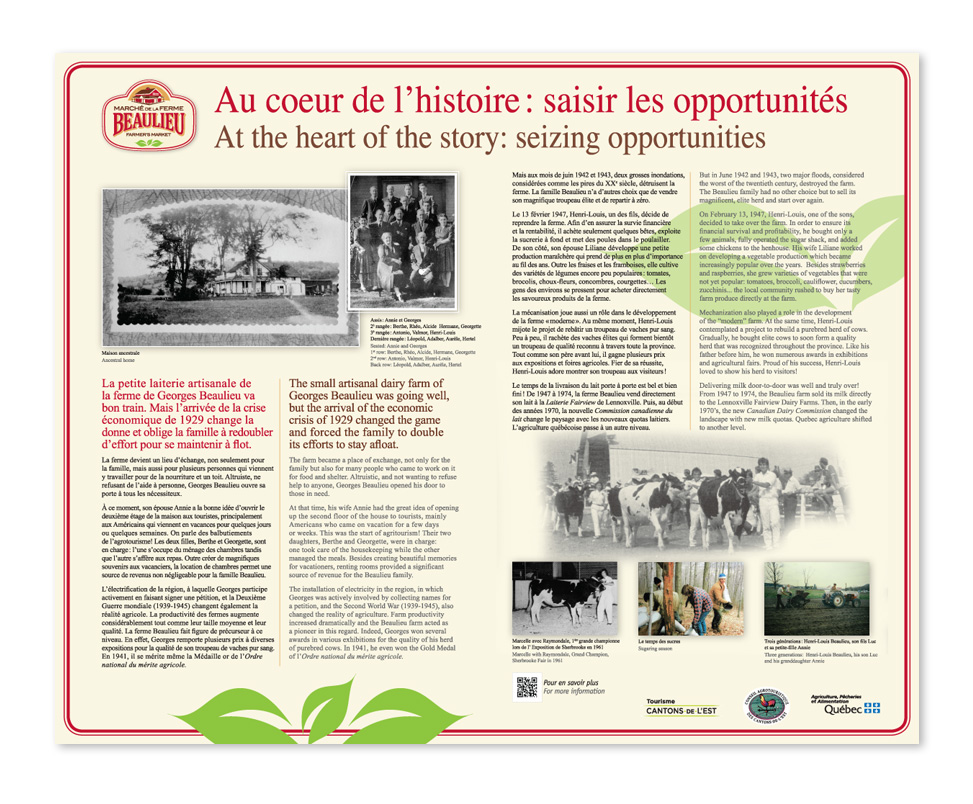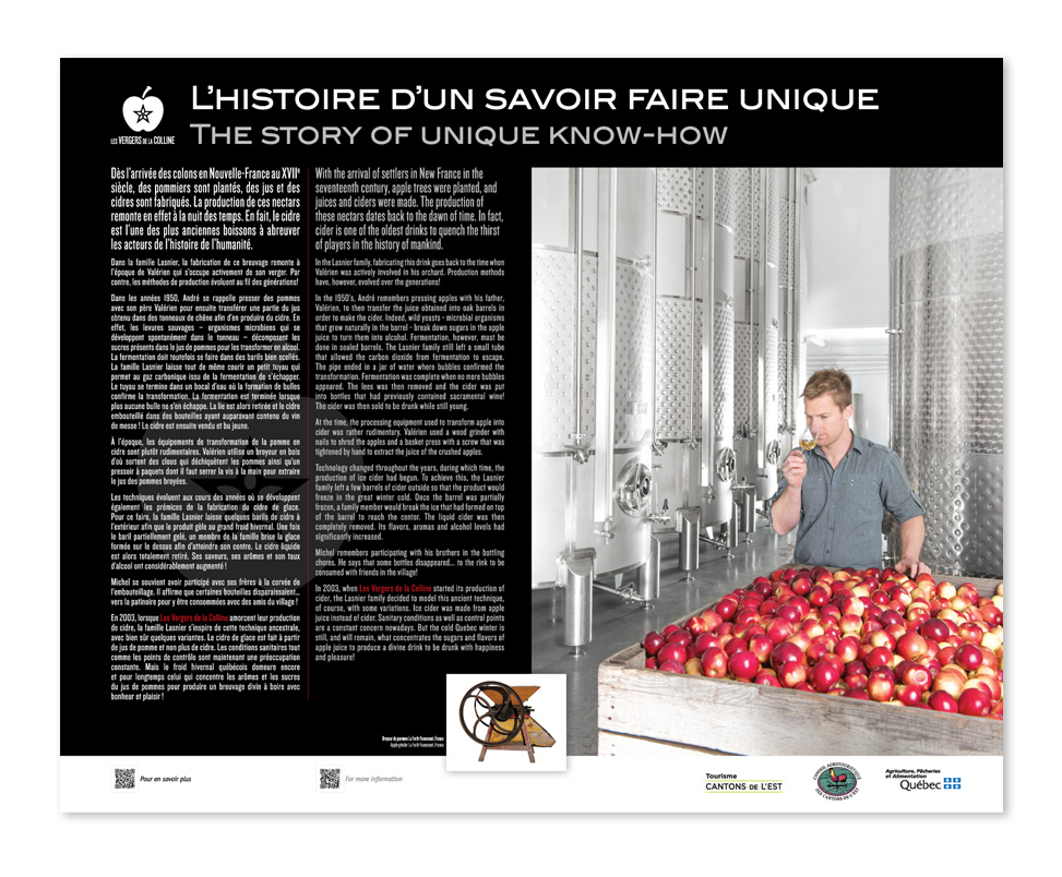Création de 123 panneaux d’interprétation historiques répartis sur les sites de 38 attraits agrotouristiques des Cantons-de-l’Est.